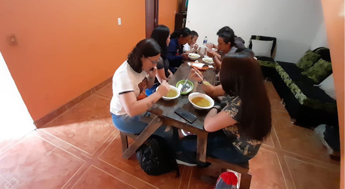 Una lana matizada del color azul al violeta, pasó de mano en mano hasta construir no solo un tejido armonioso y vistoso, sino también el inicio de una red de nuevas confianzas, risas y sueños. Un espacio de sororidad y resiliencia se generó cuando por diversos motivos fue necesario readaptar situaciones imprevistas.